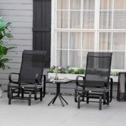 Outsunny 2 Gliding Garden Rocking Chair With Table – Black – 84A-134BK