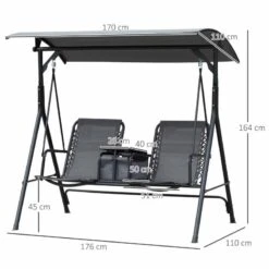 Outsunny 2-Seater Swing Chair With Table – Grey – 84A-057V70