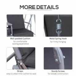 Outsunny 2-Seater Garden Swing Chair With Table – Grey – 84A-141GY
