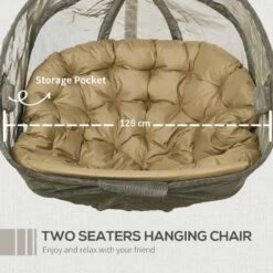 Outsunny Double Hanging 2 Seater Egg Chair With Cushion – Brown – 84A-208V70