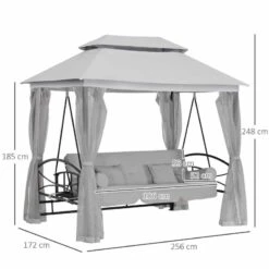 Outsunny Convertible Swing Chair With Gazebo – Light Grey – 84A-102V70GY