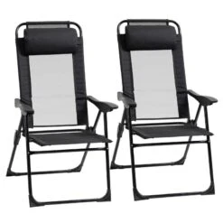 Outsunny Garden Reclining Chair Set With Pillow – Black – 84B-902V70BK
