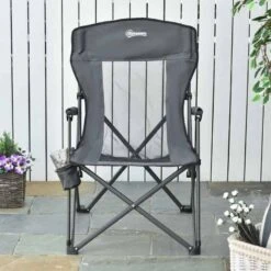 Outsunny Folding Camping Chair With Cup Holder – Grey – A20-190