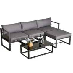 Outsunny 5 Piece L-shaped Garden Furniture Set – Grey – 84B-817V70CG