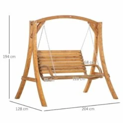 Outsunny 2 Seater Pine Wood Garden Swing Chair – Brown – 84A-218