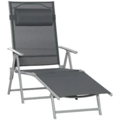Outsunny Reclining Sun Lounger With Pillow – Grey – 84B-812BK