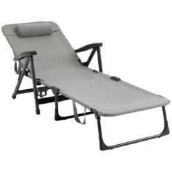 Outsunny Reclining Sun Lounger With Pillow – Grey – 84B-184GY