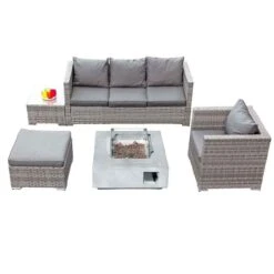 OseasonsĀ® Acorn Rattan 5 Seat Lounge Sofa Set With GRC Firepit – Dove Grey – 106898