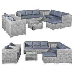 OseasonsĀ® Malta Rattan 9 Seater U-Shape Set – Ocean Grey – 106425