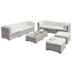 OseasonsĀ® Trinidad Deluxe Rattan 8 Seat Firepit Modular Sofa Set – Dove Grey – 106903