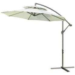 Outsunny 2.7m Banana Cantilever Parasol With Crank Handle And Cross Base – Cream White – 84D-161