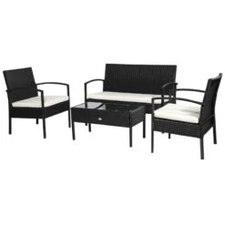 Outsunny 4-Seater Rattan Garden Furniture Set – Black – 84B-372BK