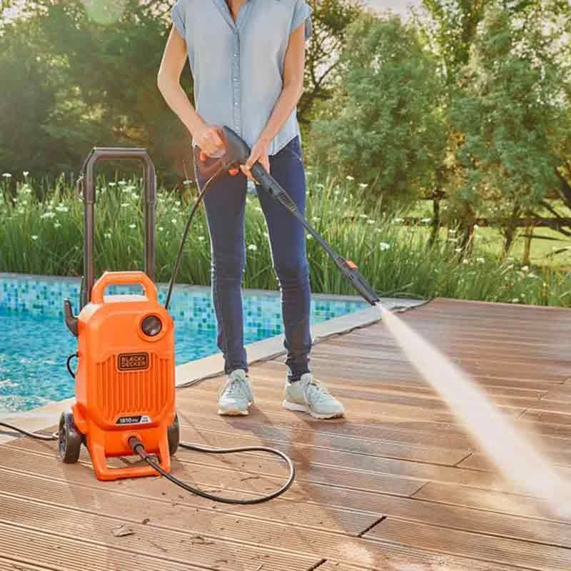 The BLACK + DECKER BEPW1700 Pressure Washer comes with a self priming function, no inlet pressure required. Meaning you can use any source of water, ideal in areas with low pressure in the water supply. Its aluminium pump is more durable, non corrosive and maintenance-free.