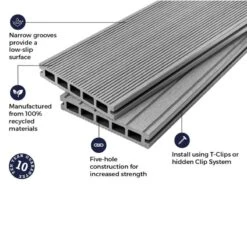 Cladco WPC Original Hollow Composite Decking Board 2.4 Metre x 150 x 25mm – Light Grey – WPCHL22 – Details