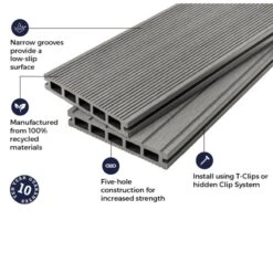 Cladco WPC Original Hollow Composite Decking Boards 4 Metre x 150 x 25mm – Stone Grey – WPCHS40 – Details