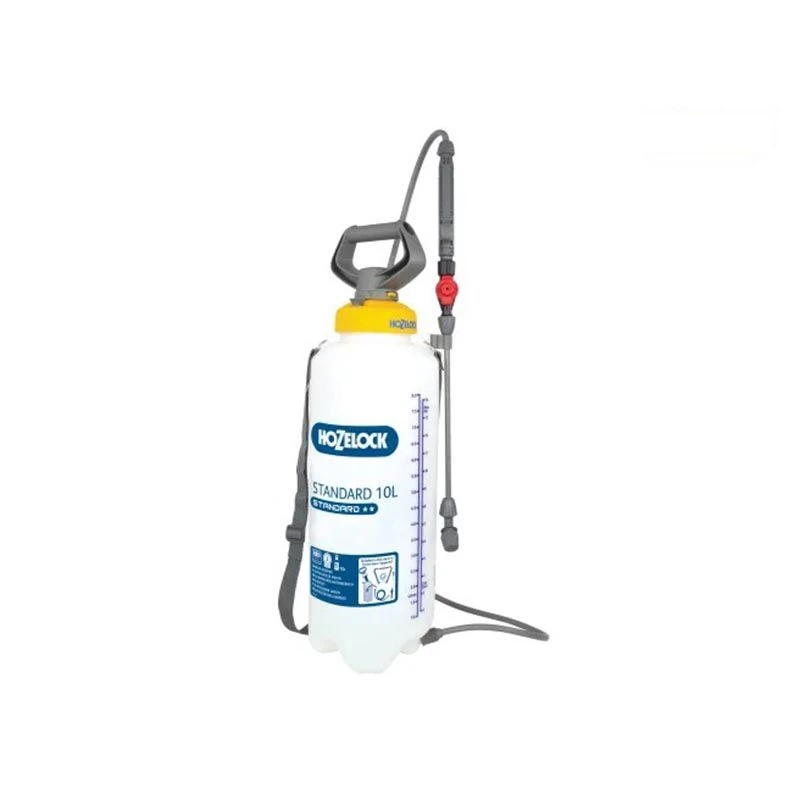 The Hozelock standard pressure sprayer has a capacity of 10 litre with 8 litre maximum fill level to allow sufficient air gap for pressurisation. It provides an easy, accurate and cost-effective application of water, insecticides, pesticides, fungicides and water-soluble fertilisers.