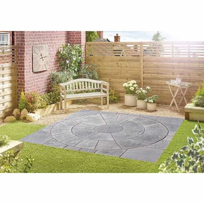 Transform your outdoor area with the stunning Abbey Circle Squaring Off Kit in Graphite. The kit will help create an attractive area where you can relax or enjoy an outdoor gathering and would make a fantastic centrepiece for your garden. It is designed to be used with the circle paving kit to create a full square patio with the circle residing in the centre. Manufactured from a natural material, the colour of the slabs may vary in hue which can add character and exclusivity to your piece, accentuated by the random nature of the pattern it is laid in. There are 20 easy to lay slabs included in the kit that is designed to cover an area of 7.29 m² (including the circle paving kit).
