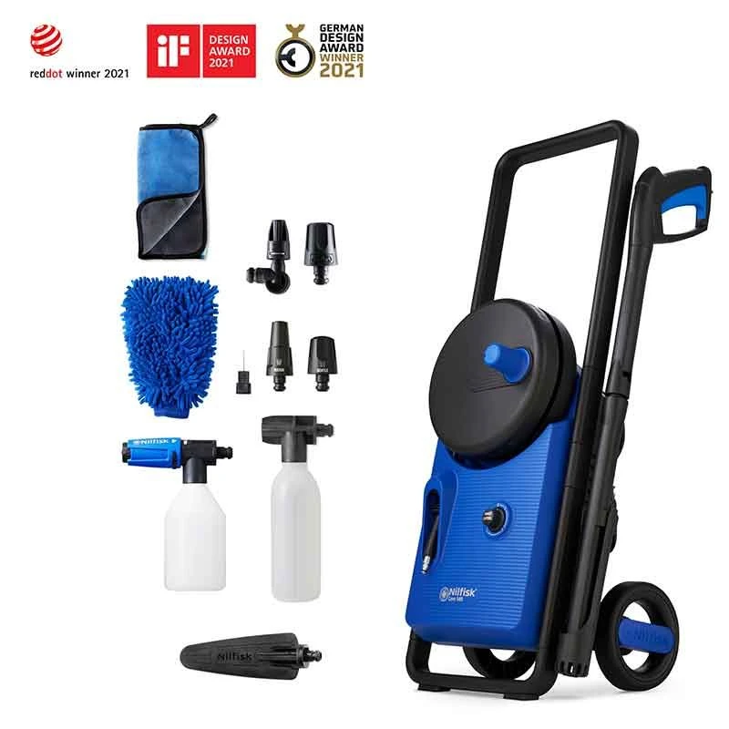 - Additional Accessories – Click&Clean Super Foamer, Click&Clean Under Chassis Nozzle, Click&Clean Cycle & Auto Nozzle, Nilfisk Car Cleaning Mitt, Nilfisk Drying Towel
