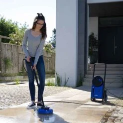 Check out this Kew Nilfisk Core power control pressure washer that is ideal for your paving, cars and much more. The user guide on the machine shows you the correct nozzle to select for different types of cleaning, the rough and gentle nozzles are perfect for versatile cleaning. Simply adjust the power control using the dial (choose from 60%-100%), that allows you to clean soft and hard surfaces removing the most stubborn of stains without leaving any residue behind. The 6-metre hose is easily stored away by reeling it behind the machine and retracts around the reel without any damage or tangling. The reliable and long-lasting air-cooled motor and auto stop start function are just a few of you features this pressure washer has. Complete with wheels, onboard lance and gun holder, you can conveniently manoeuvre this pressure washer around and can be compactly stored away when not in use.