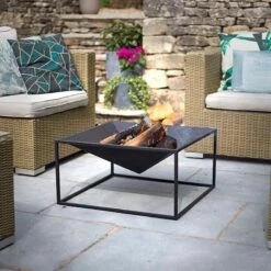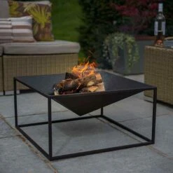 A natural focal point for any patio, the Cairo Firepit will provide welcoming warmth and flickering light well into the evening. The La Hacienda Cairo Firepit features a striking upside down pyramid design set in a square framed stand. This sleek, modern firepit is sure to create a talking point wherever it is placed. The sturdy steel construction and matt black colour scheme complete the Cairo firepit.
