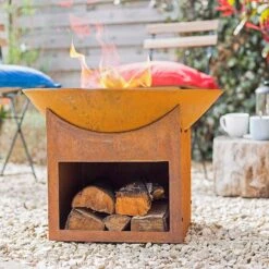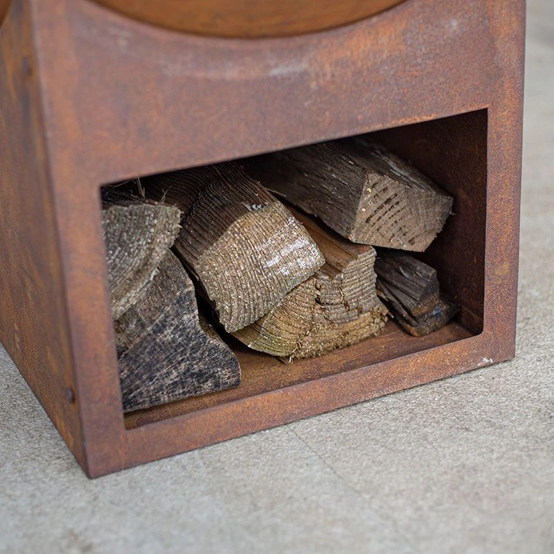 La Hacienda’s Fasa Firepit takes centre stage within the garden, creating a perfect addition that suits your outdoor gathering as a wearming addition bringing a solution to your exterior design. The Fasa Firepit fits perfectly within your garden whether adding onto your patio or even a decking matching a range of garden furniture to create an entertainment area that can be enjoyed by anyone. With a handy, inbuilt log storage solution the firepit includes a neat and tidy option that brings a perfect fuel store when it is not in use helping the refuelling involving no effort at all.