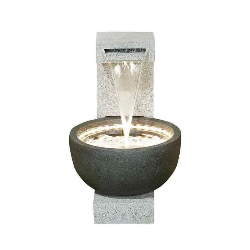 The La Hacienda Solitary Pour Water Feature is a self-contained fountain with a recirculating pump which is included with this product. This product is very easy to set up and is low maintenance with no peeling or tarnishing. This product comes with a 2 year manufacturers guarantee.