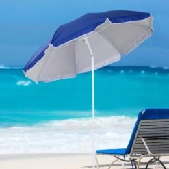 Outsunny’s beach parasol is a must-have for sunny days because it is fashionable and practical. It is easy to adjust and blocks the sun’s rays due to its tilting steel frame. The frame is made of powder-coated steel. It maintains its position even on windy days because of its robust and stable design. The canopy may be adjusted, and opening and closing it is made simple with a button. The parasol offers ample shade and shields against UV rays. It is made of three parts and comes with a handy carry bag. It can be assembled and disassembled quickly. No umbrella stand is provided.