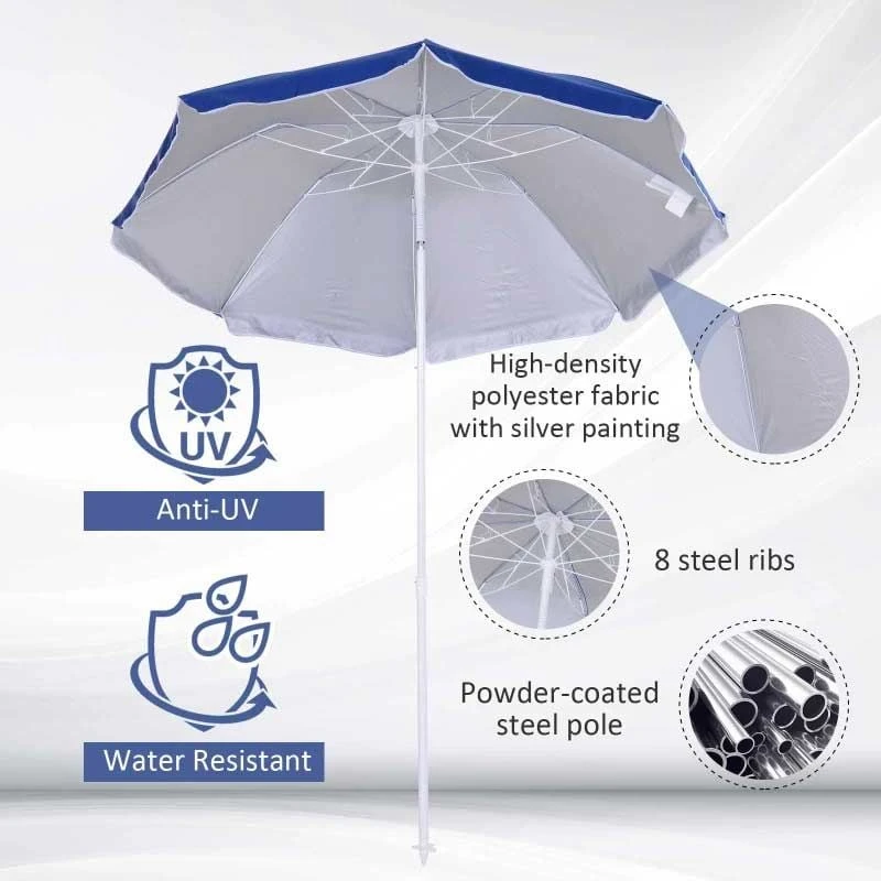 Outsunny 1.7m x 2m Tilted Steel Frame Beach Parasol – Blue – 84D-069BU