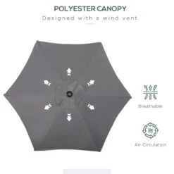 Outsunny 1.96m Patio Parasol with 6 Sturdy Ribs – Dark Grey – 84D-159CG
