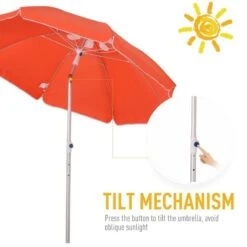 Outsunny 1.9m Beach Umbrella with Adjustable Angle Pointed Design Carry Bag – Orange – 84D-092OG