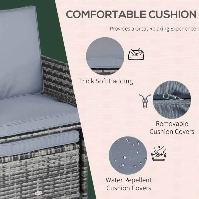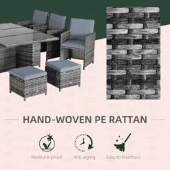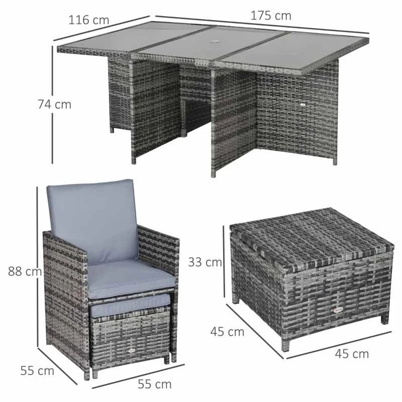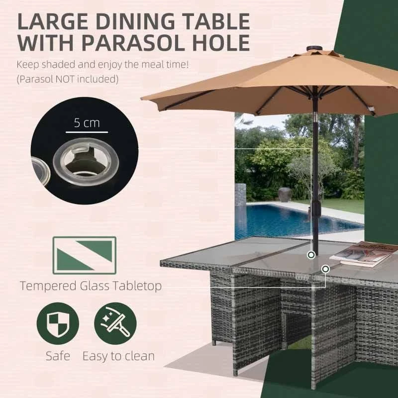 Outsunny 11 Piece Patio Dining Rattan Wicker Set with Footrest – Mixed Grey – 861-031GY