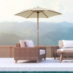 Outsunny 2.5 m Wooden Umbrella Parasol – Cream – 01-0212
