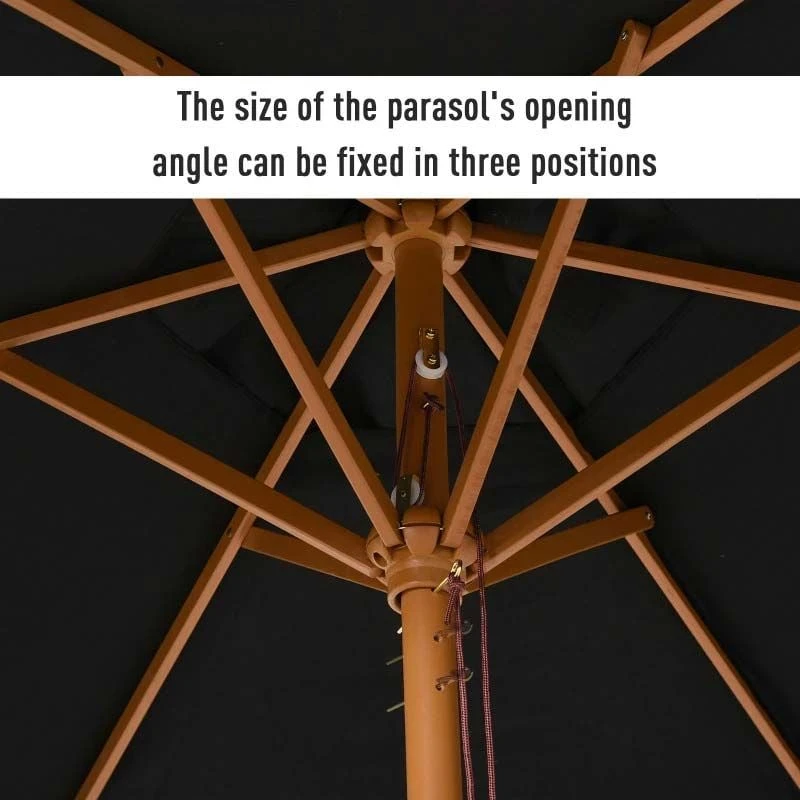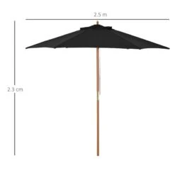 Outsunny 2.5m Wood Parasol – Black – 84D-056BK