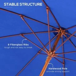 Outsunny 2.5m Wooden Garden Parasol – Blue – 84D-097BU