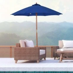 Outsunny 2.5m Wooden Garden Parasol – Blue – 84D-097BU