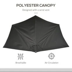 Outsunny 2.7m Balcony Half Parasol 5 Steel Ribs – Black – 84D-007V00BK