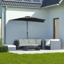 The Outsunny Solar Parasol is the ideal solution for small outdoor settings. This balcony parasol half is intended to provide shelter and elegance for tiny gardens or balconies. It effectively protects you from harsh weather due to its solid metal frame and UV-resistant, waterproof PE cloth. The convenient crank handle makes setup and removal simple, and the portable form provides flexibility. This sun umbrella is a wonderful addition to any balcony or patio due to its robust construction and ease of maintenance.
