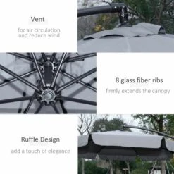 Outsunny 2.7m Banana Cantilever Parasol with Crank Handle and Cross Base – Dark Grey – 84D-161CG