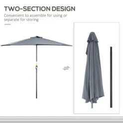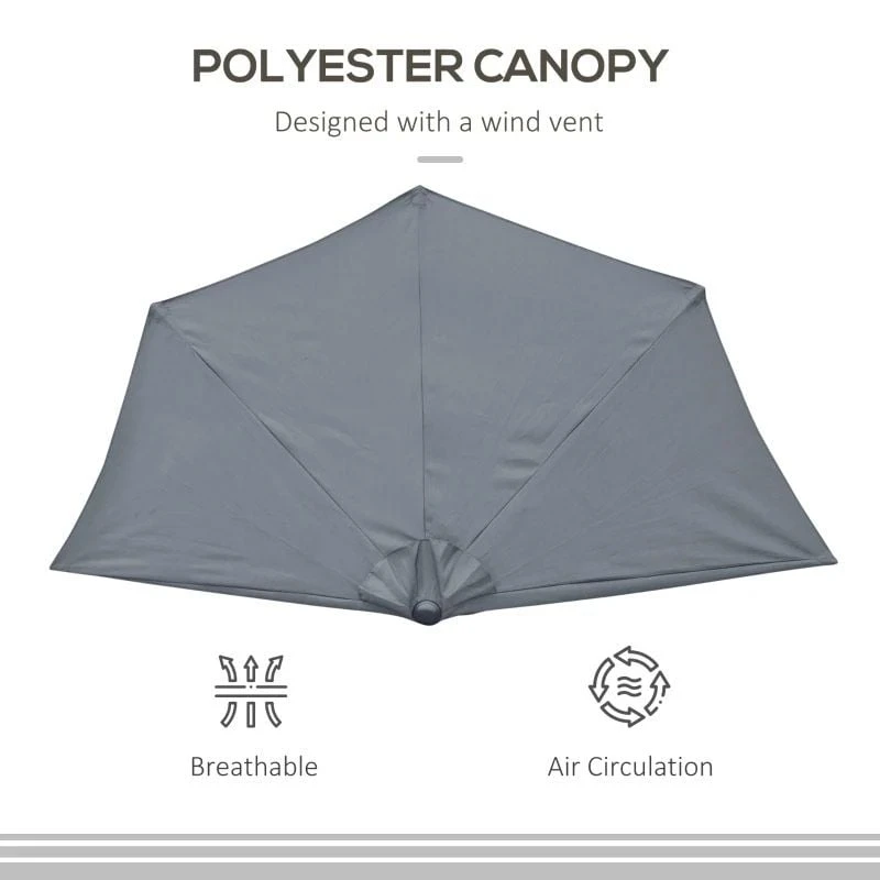 Outsunny 2.7m Half Round Balcony Parasol – Grey – 84D-007GY