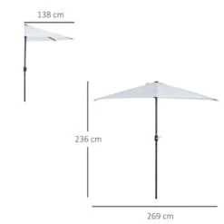 Outsunny 2.7m Half Round Umbrella Parasol – Cream – 84D-007CW
