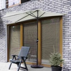 Outsunny 2.7m Half Round Umbrella Parasol – Cream – 84D-007CW
