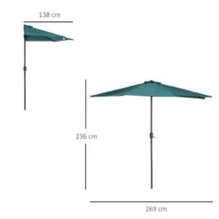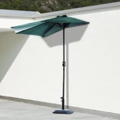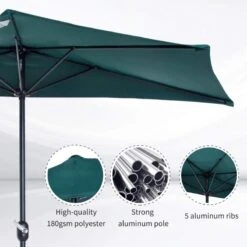 Outsunny 2.7m Half Round Umbrella Parasol – Green – 84D-007GN