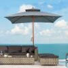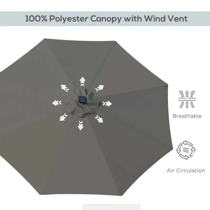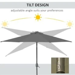 Outsunny 2.7m Patio LED Parasol with Push Button Tilt Crank & 8 Rib – Grey – 84D-018CG