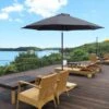 Elevate your outdoor space with the elegant and practical design of the Outsunny Outdoor Umbrella. This umbrella offers essential sun protection while adding a touch of sophistication to your backyard, garden, patio, or pool area. It seamlessly complements your existing patio furniture, allowing you to enjoy beautiful summer days in the shade. Perfect for villas, gardens, courtyards, and swimming pools, this large parasol features three adjustable positions for versatile shading options. Constructed with 8 bamboo ribs for enhanced durability and flexibility, it boasts a convenient handle for smooth and effortless opening. The high-quality polyester covering ensures reliable and long-lasting performance. With its clean finish and upright design, this umbrella stands out as a visual delight. Please note that the umbrella stand is not included. Embrace outdoor comfort and style with this remarkable umbrella.