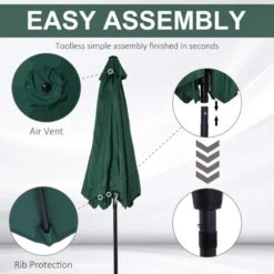 Outsunny 2.7m Patio Parasol with Crank and 38mm Aluminum Tilt Pole – Green – 84D-032GN