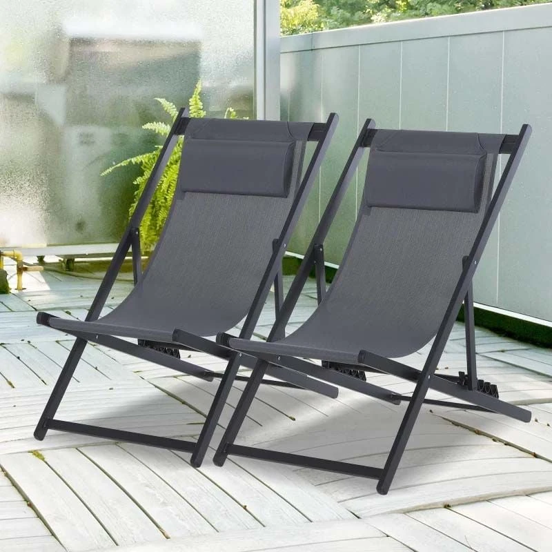 Outsunny 2-Piece Garden Deck Chairs – Grey – 84B-342V70CG