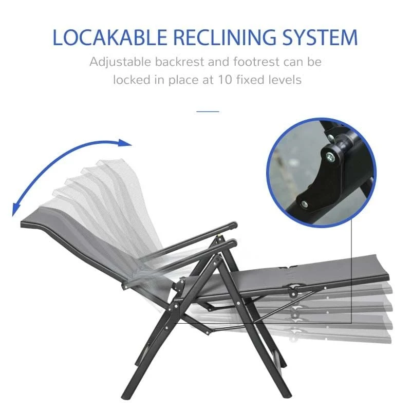 Outsunny 2-Piece Reclining Sun Lounger Set – Grey – 84B-537V01