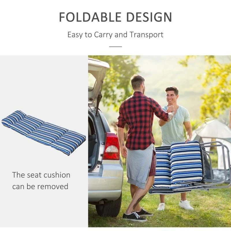Outsunny 2-Piece Reclining Sun Lounger Set – With Cushions – Blue – 84B-571V70BU