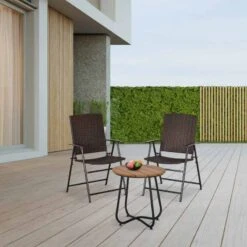 The Outsunny Rattan Bistro Set is a perfect addition for patios, balconies, and gardens. With a foldable design, it’s easy to store when not in use, requiring minimal effort. The PE rattan used is water- and UV-resistant. The steel frame provides a solid and sturdy core, so you can relax with peace of mind. Foot pads protect your floor from scratches and damage to your outdoor space. This set is easy to clean and maintain.
