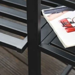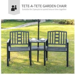 Outsunny 2 Seat Garden Chair Bench w/Coffee Table – Metal – Black – 84B-494V01
